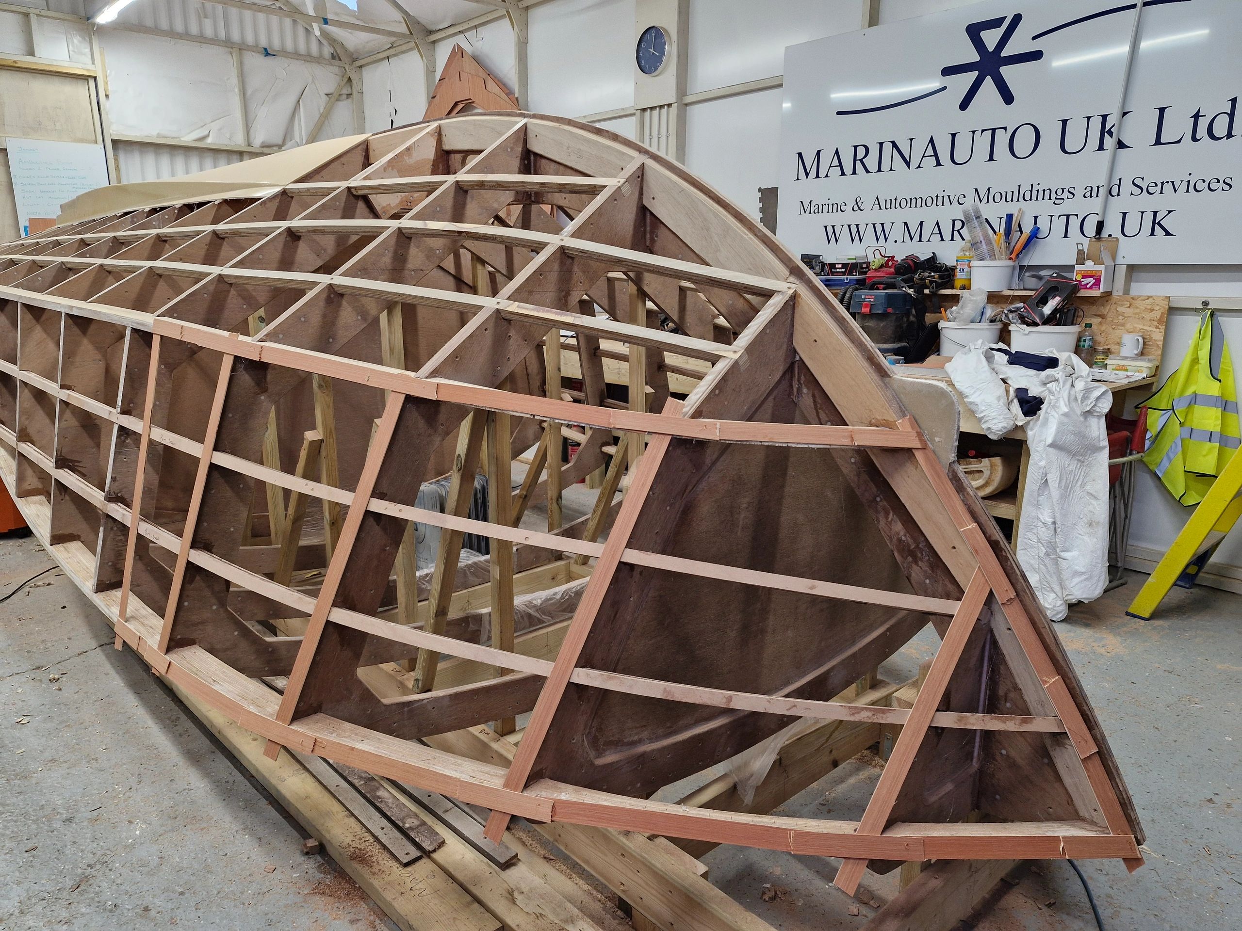 Project SOSKI is now well underway. A full scale prototype is in production with an anticipated launch date of May 2027 we are looking to have her hull sheathing and coatings completed and the right way up by early May 2026.